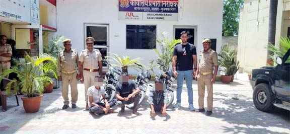 मुजफ्फरनगर।(Muzaffarnagar News)थाना Mansurpur Police द्वारा किया गया अन्तर्जनपदीय वाहन चोर गिरोह का पर्दाफाश किया जहां मोटरसाइकिल चोरी के अभियोग का सफल अनावरण करते हुए ०३ चोर अभियुक्तगण को किया गया गिरफ्तार किया जिसके कब्जे से चोरी की ०३ मोटरसाइकिल बरामद की।