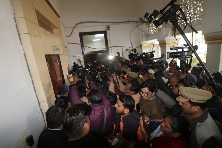 केजीएमयू में शुक्रवार को धर्मांतरण के प्रयास के मामले में राज्य महिला आयोग की उपाध्यक्ष अपर्णा यादव पहुंचीं थीं। इससे पहले ही वहां काफी संख्या में हिंदू संगठन और अन्य लोग मौजूद थे। अपर्णा यादव के पहुंचने के बाद वहां नारेबाजी और हंगामा शुरू हो गया। इस दौरान दरवाजे की सिटकनी और कुलपति कार्यालय का सामान भी क्षतिग्रस्त हुआ। हंगामे के दौरान कुलपति का सीयूजी नंबर वाला मोबाइल फोन भी गुम हो गया। केजीएमयू प्रशासन की ओर से प्रॉक्टर प्रो.आरएएस कुशवाहा ने इस मामले में एफआईआर दर्ज कराने के लिए शुक्रवार को ही तहरीर दे दी, लेकिन पुलिस ने जांच की बात कहते हुए शनिवार शाम तक एफआईआर दर्ज नहीं की। इस वजह से केजीएमयू केशिक्षक, कर्मचारी और स्टूडेंट में आक्रोश है। ये सभी माले में आरपार के मूड में हैं। सोमवार को बैठक के बाद केजीएमयू में आंदोलन की दिशा तय होगी।