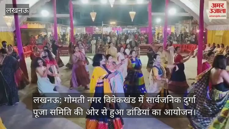 लखनऊ: गोमती नगर विवेकखंड में सार्वजनिक दुर्गा पूजा समिति की ओर से हुआ डांडियां का आयोजन