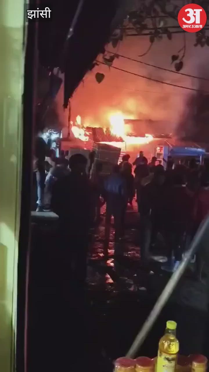 झांसी: सुभाषगंज में दोने-पत्तल की दुकान में लगी आग, आसपास की दुकानों को भी लिया चपेट में, अलाव से आग लगने का बताया गया कारण
