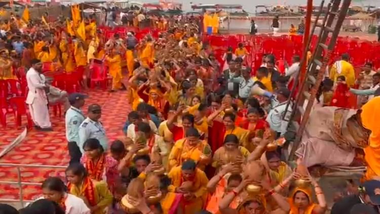 यूपी के अयोध्या में राम मंदिर के ध्वजारोहण समारोह की बृहस्पतिवार को सुहागिन महिलाओं की कलश यात्रा के साथ शुरुआत हो गई। यह कलश यात्रा सरयू नदी के संत तुलसी घाट से राम मंदिर तक निकाली गई। इसमें सैकड़ों महिलाएं और वैदिक विद्यार्थी शामिल रहे।