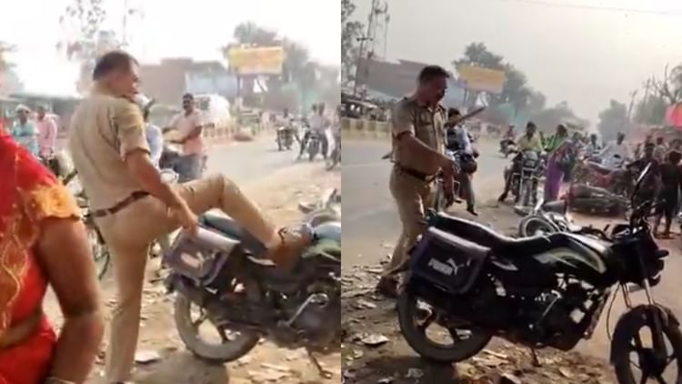 लात मार कर बाइक गिराने और लोगों से दुर्व्यवहार करने वाला दरोगा लाइन हाजिर