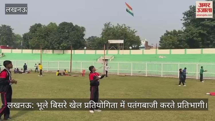 लखनऊ: भूले बिसरे खेल प्रतियोगिता में पतंगबाजी करते प्रतिभागी