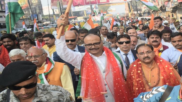एकता पदयात्रा में शामिल डिप्टी सीएम बृजेश पाठक।