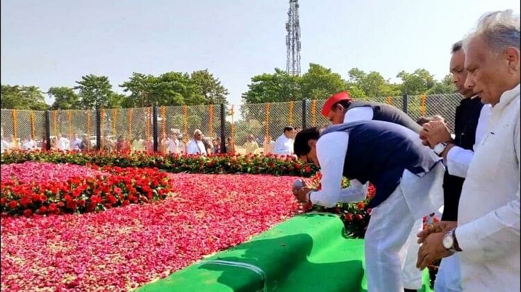 मंगलवार को मुलायम सिंह यादव की पहली पुण्यतिथि पर उनके पैतृक गांव सैफई में मेला ग्राउंड में बने समाधि स्थल को फूलों से सजाया गया था। वहीं एक विशाल पंडाल बनाया गया। मंगलवार को सुबह से ही लेकर शाम तक समाजवादी पार्टी से जुड़े हुए लोग नेताजी को श्रद्धा सुमन अर्पित करने के लिए पहुंचते रहे।