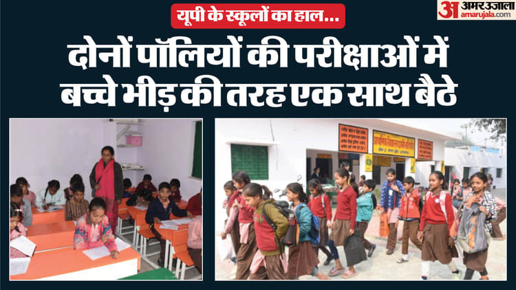 परिषदीय विद्यालय में बृहस्पतिवार को पहली पाली में गणित, हिंदी और विज्ञान की परीक्षा जबकि, द्वितीय पाली में संस्कृत और उर्दू विषय की परीक्षा आयोजित हुई। दोनों पॉलियों की परीक्षा में छात्रों के पास कॉपी और प्रश्नपत्र तो थे लेकिन, कक्ष भवन के अभाव में कई कक्षाओं के बच्चे भीड़ की तरह एक साथ बैठे नजर आएं। इतना ही नहीं प्रश्न पत्र पर कुछ शिक्षकों ने तो ट्रिक भी लगाया था।