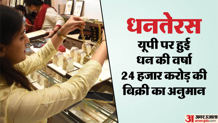 Sales on Dhanteras: धनतेरस पर यूपी का बाजार चमक उठा। एक अनुमान के मुताबिक शनिवार को पूरे प्रदेश में करीब 24 हजार करोड़ की बिक्री हुई।