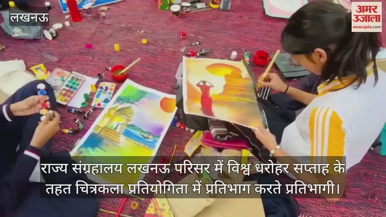 राज्य संग्रहालय लखनऊ परिसर में विश्व धरोहर सप्ताह के तहत उ प्र पुरातत्व निदेशालय एवं राज्य संग्रहालय के संयुक्त तत्वावधान में दूसरे दिन आयोजित भारत के सांस्कृतिक विश्व धरोहर स्थलों पर आधारित विद्यालय स्तरीय चित्रकला प्रतियोगिता प्रतिभाग करते प्रतिभागी