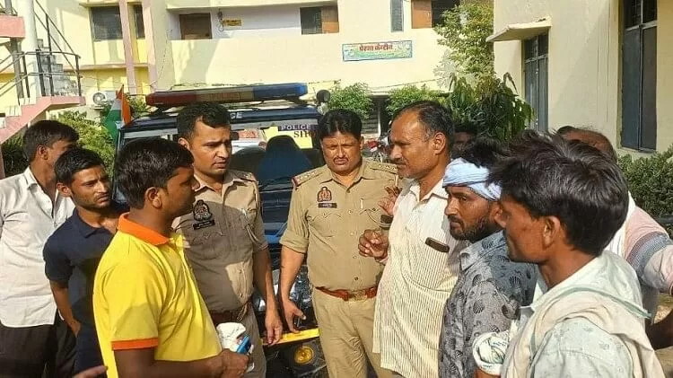 हादसे के बाद परिजनों से वार्ता करती पुलिस