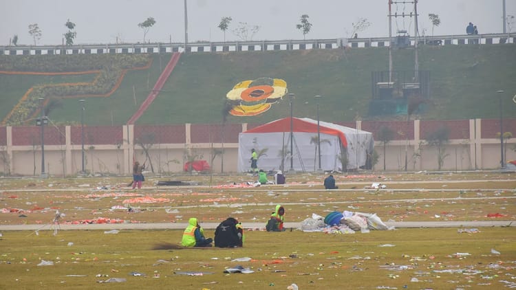 नगर निगम से जुड़े सफाई कर्मचारियों ने बताया कि परिसर के अंदर ग्लास, खाली बोतल, प्लेट, फूल, प्लास्टिक जैसी खराब वस्तुएं चारों तरफ फैली हुई है। हर दिन तीन से चार डंपर कूड़ा बाहर ले जाया जा रहा है लेकिन, अभी भी पूरी तरह से सफाई नहीं हुई है। कर्मचारियों ने बताया कि कार्यक्रम स्थल की सजावटी के लिए करीब 3000 कर्मियों की ड्यूटी लगाई गई थी। लेकिन, सफाई में 200 से भी कम कर्मचारियों की ड्यूटी लगाई गई है। ऐसे में पूरे परिसर की सफाई होने में समय लग रहा है।