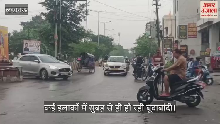 राजधानी लखनऊ में सुबह से बूंदाबांदी शुरू हो गई। यह तस्वीर है अलीगंज क्षेत्र का जहां सुबह से ही मौसम खराब है। स्कूल जा रहे बच्चे बारिश से बचने के लिए रेनकोट और छाता लेकर जाते दिखे।
