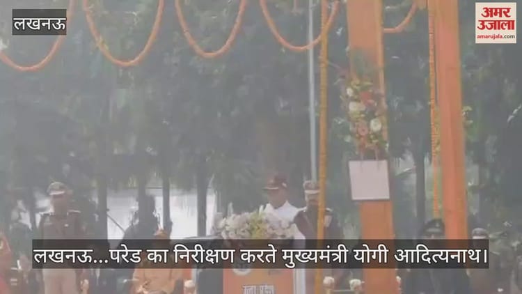 लखनऊ…परेड का निरीक्षण करते मुख्यमंत्री योगी आदित्यनाथ
