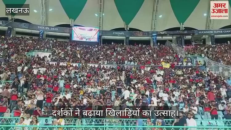 अटल बिहारी वाजपेई इकाना स्टेडियम में लखनऊ सुपरजाइंट्स बनाम रॉयल चैलेंजर्स बैंगलोर के बीच हो रहे आईपीएल 2025 के मुकाबले में खिलाड़ियों का उत्साह बढ़ाते दर्शक।