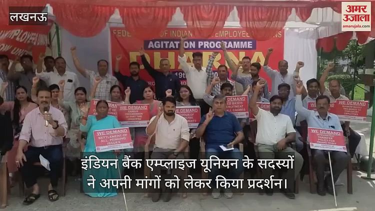 राजधानी लखनऊ में शनिवार को हजरतगंज स्थित इंडियन बैंक के सामने इंडियन बैंक एम्प्लाइज यूनियन के सदस्यों ने अपनी मांगों को लेकर प्रदर्शन किया।