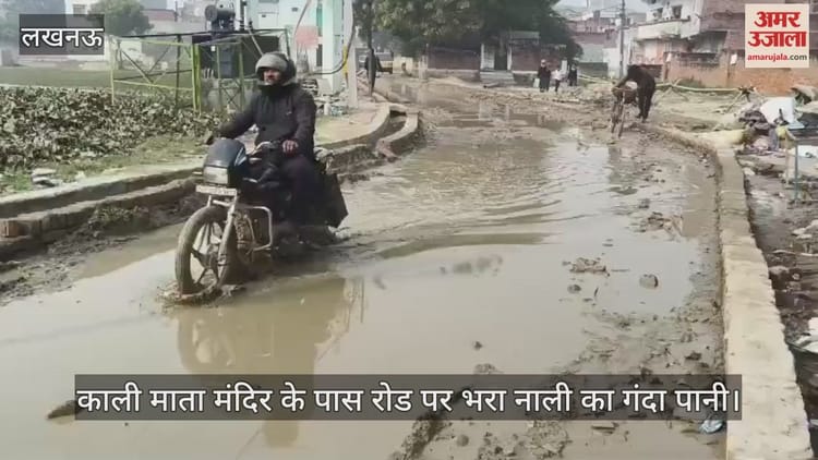 लखनऊ में तपोवन नगर कालोनी में काली माता मंदिर के पास रोड पर भरा नाली का गंदा पानी