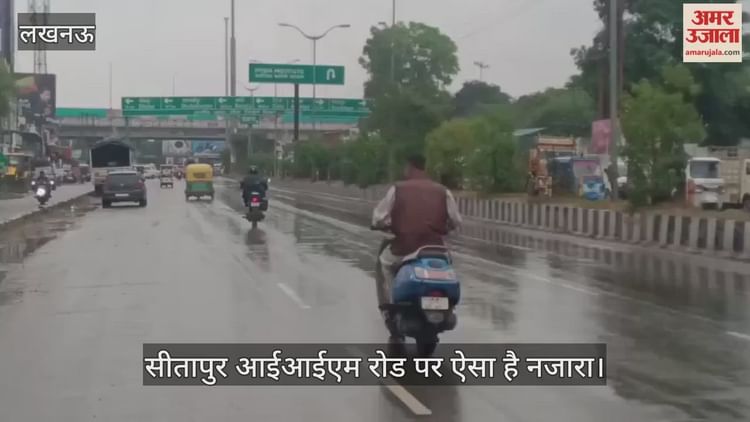 लखनऊ में हो रही बारिश, सीतापुर आईआईएम रोड पर ऐसा है नजारा
