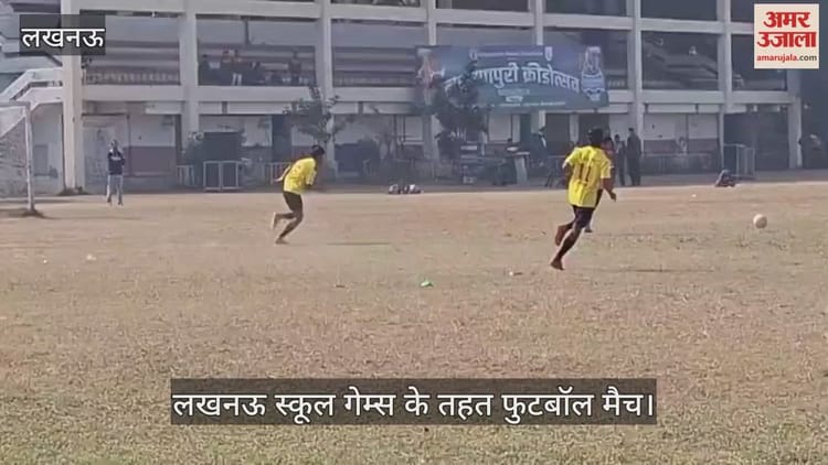 लखनऊ के चौक स्टेडियम में लखनऊ स्कूल गेम्स के तहत फुटबॉल मैच में भिड़तीं रस्तोगी इंटर कॉलेज (लाल) व शिवनंदन इंटर कॉलेज (पीली)।