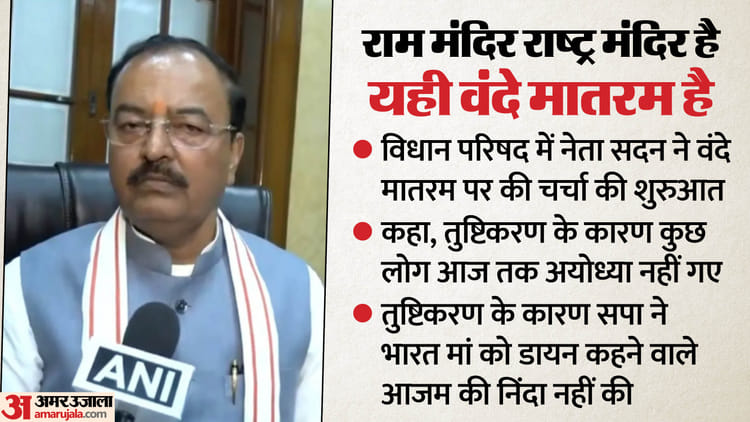 विपक्ष पर निशाना साधते हुए केशव मौर्य ने कहा कि तुष्टीकरण की राजनीति के कारण आजम खां ने भारत मां को डायन कहा किंतु सपा नेता ने कभी उसकी निंदा नहीं की। भारत मां साक्षात दुर्गा हैं। तुष्टीकरण के कारण ही कुछ लोग आज तक अयोध्या नहीं गए। आजादी के बाद देश के टुकड़े हो गए। वंदे मातरम के टुकड़े करने वाले आज सदन में नहीं हैं।