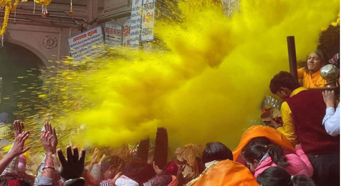 श्रीबांकेबिहारी मंदिर के आचार्य प्रहलाद बल्लभ गोस्वामी ने बताया कि वसंत पंचमी पर शुक्रवार को सुबह से ही होली का शुभारंभ हो जाएगा। सेवायत गोस्वामियों द्वारा ठाकुर बांकेबिहारी महाराज का वसंती पोशाक व अलंकारों से शृंगार किया जाएगा। भगवान के कपोलों (गालों) पर लाल गुलाल व कुमकुम लगाई जाएगी। सरसों के फूलों की गुथी हुई माला (गुंजा) चढाई जाएंगी। केसरिया छेना की खीर, अधौटा दूध, मोहनभोग, बादाम, मूंग दाल और सूजी के हलुआ का भोग लगाया जाएगा। ठाकुरजी के समक्ष गोस्वामी होली के पदों का गायन करेंगे।