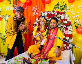 कार्यक्रम में अयोध्या से आए गायक रामचरण और गायक रविकांत ने अपने मधुर भजनों से समां बांध दिया। नोएडा से आईं कथा यजमान स्वदेश और सुषमा सहित कई गणमान्य लोग भी मंच पर मौजूद रहे। आचार्य अरुण, आचार्य युवराज और ठाकुर प्रसाद जैसे विद्वानों की उपस्थिति ने आयोजन की गरिमा को और बढ़ाया।
