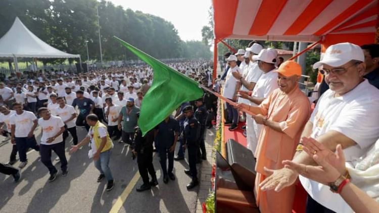 राजधानी लखनऊ में रविवार को ‘नमो मैराथन’ का आयोजन किया गया। इसमें बड़ी संख्या में युवाओं ने भाग लिया।