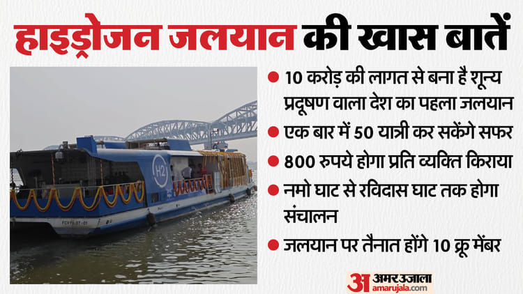 देश के पहले हाइड्रोजन कमर्शियल जलयान का शुभारंभ बृहस्पतिवार को नमो घाट से हुआ। केंद्रीय पत्तन पोत परिवहन और जलमार्ग मंत्री सर्बानंद सोनोवाल व प्रदेश के तीन राज्य मंत्रियों ने एक साथ जलयान को हरी झंडी दिखाई। इसके बाद जलयान को श्री काशी विश्वनाथ धाम कॉरिडोर के लिए रवाना किया गया। कोच्चि शिपयार्ड में 10 करोड़ की लागत से 50 सीटर क्षमता का यह हाइड्रोजन जलयान बना है। हाइड्रोजन जलयान ने पहली बार पांच किलोमीटर का सफर गंगा में तय किया।