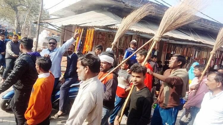 कासगंज के सोरोंजी में बकाया बोनस, एरियर, वेतन की मांग करते हुए सफाई कर्मचारियों ने सोमवार को नगर पालिका परिसर में धरना-प्रदर्शन किया। सफाई मजदूर संघ के तत्वावधान में आयोजित इस विरोध प्रदर्शन के दौरान उन्होंने नारेबाजी की और हाथों में झाड़ू लेकर बाजार में जुलूस निकाला।