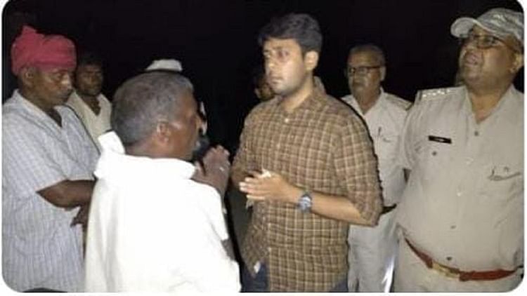 ग्रामीणों से बात करते वन विभाग के अधिकारी