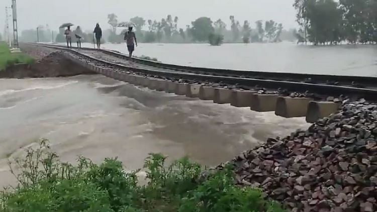 पुलिया बह गई, हवा से लटकी रेल पटरी