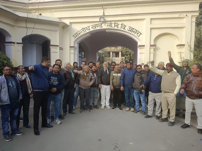 आगरा। लोक निर्माण विभाग (पीडब्ल्यूडी) और ठेकेदार के बीच वित्तीय विवाद 2400 से अधिक कर्मचारी, अधिकारी और पेंशनर्स के लिए गले की फांस बन गया है। तीन महीने से वेतन और पेंशन बंद है। इसके विरोध में बुधवार को कर्मचारियों ने कार्य बहिष्कार कर पीडब्ल्यूडी दफ्तर में प्रदर्शन किया।