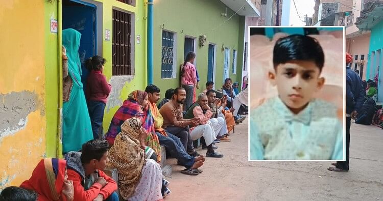 निखिल उर्फ रज्जू की फाइल फोटो और गमगीन बैठे परिजन