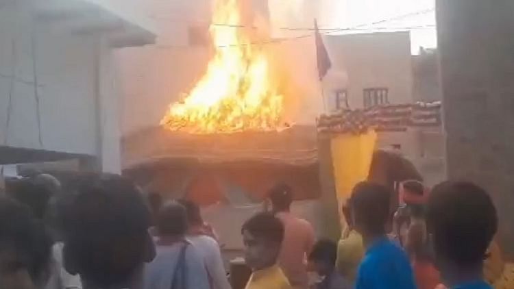 हाथरस शहर के अलीगढ़ रोड, रमनपुर मोहल्ला स्थित प्राचीन चामुंडा देवी मंदिर पर चल रहे सहस्त्रचंडी महायज्ञ की कुटिया में 9 अप्रैल की शाम को शॉर्ट सर्किट के बाद भीषण आग लग गई। इससे वहां अफरा-तफरी मच गई। कुछ ही देर में कुटिया आग का गोला बन गई और आग की चपेट में आने से पूरी तरह से खाक हो गई। लोगों ने तुरंत इसकी सूचना फायर ब्रिगेड को दी, लेकिन फायर ब्रिगेड के पहुंचने से पहले ही लोगों ने सबमर्सिबल पंप चलाकर आग पर काबू पा लिया।