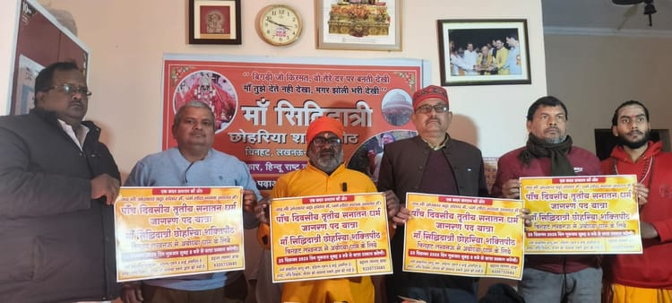 लखनऊ। चिनहट सि्थत छोहरिया माता मंदिर से 25 दिसंबर को तृतीय पांच दिवसीय सनातन पद यात्रा निकाली जाएगी। इसका उद्देश्य लोगों को हिंदू संस्कृति के प्रति जागरूक करना है। सोमवार को यह जानकारी मंदिर के मुख्य पुजारी लल्ला बाबा ने दी। उन्होंने बताया कि यात्रा सुबह आठ अयोध्या के लिए प्रस्थान करेगी। रास्ते में लोगों को जागरूक करेंगे। 25 की रात्रि विश्राम सफदरगंज बाराबंकी में होगा। 26 को रात्रि विश्राम रुदौली अयोध्या में किया जाएगा। 27 को रात्रि विश्राम दिगंबरपुर अयोध्या में होगा। 28 दिसंबर को रात्रि विश्राम नेपाली बाबा आश्रम बालू घाट पर किया जाएगा। पैदल यात्रा में जगह-जगह जलपान की व्यवस्था की गई है।