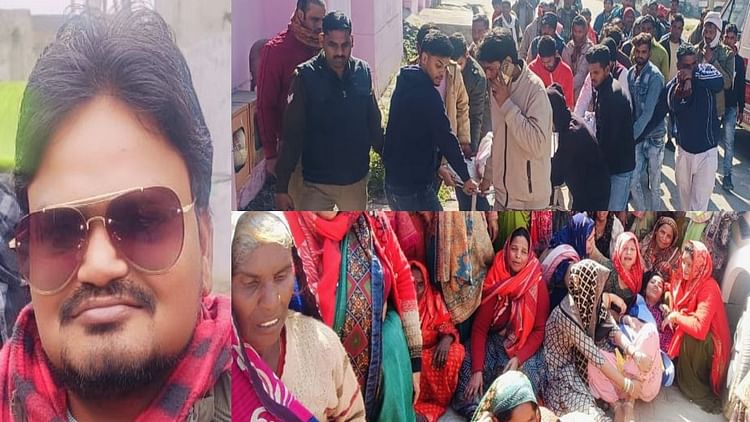 मृतक का फाइल फोटो व विलाप करते परिजन।