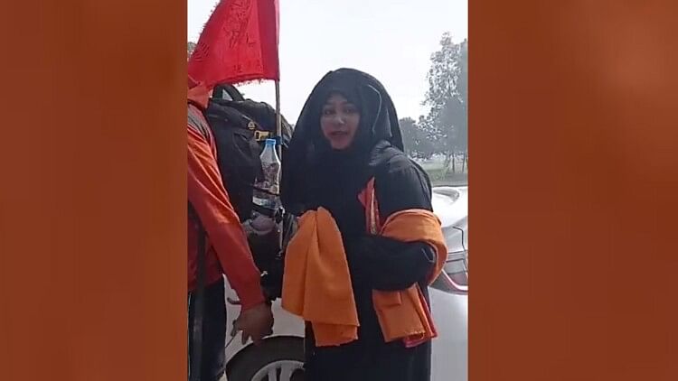 मुंबई की रहने वाली रामभक्त शबनम शेख पैदल ही भगवान राम का दर्शन करने अयोध्या जा रही हैं। शनिवार शाम करीब चार बजे शबनम शेख जगदीशपुर थाना क्षेत्र के मंगौली गांव के पास पहुंची थीं कि तभी कार से महिलाएं और पुरुष पहुंचे। भगवा कपड़े में बुर्का पहनने पर आपत्ति जताई।