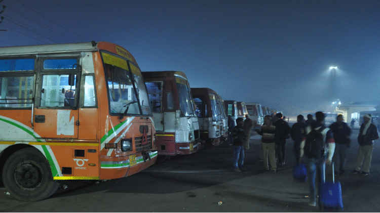 आईएसबीटी पर खड़ी रोडवेज की बसें