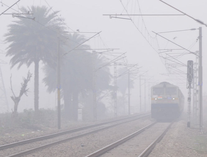 कोहरे के कारण लेट चल रहीं ट्रेनें।
