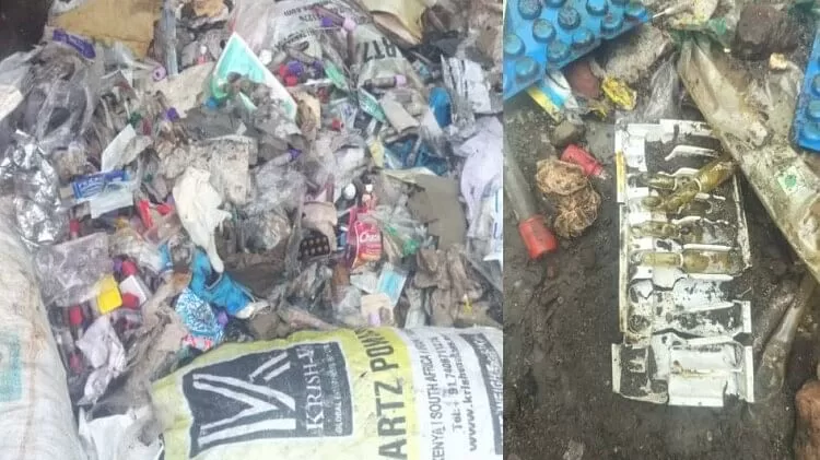 नुनिहाई में रेलवे लाइन के पास कई बोरे मेडिकल वेस्ट और दवाओं से भरे हुए मिले। कुछ दवाएं बिखरी हुई थीं, पास में ही जली हुई दवाएं और मेडिकल वेस्ट भी पड़ा हुआ था। देखने पर इसमें सिरिंज, इंजेक्शन, वाइल, ब्लड के बैग, दवाएं, कैप्सूल समेत अन्य मेडिकल वेस्ट था।