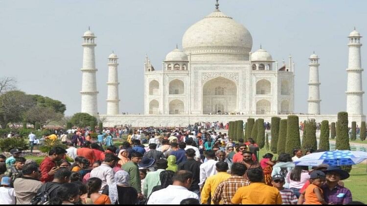 ताजमहल पर उमड़ी पर्यटकों की भीड़।