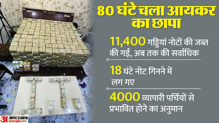 आयकर विभाग ने सबसे ज्यादा हरमिलाप ट्रेडर्स के घर से 53 करोड़ रुपये कमरे से जब्त किए, जबकि अन्य दो कारोबारियों से 4 करोड़ रुपये के नोटों की गड्डियां बरामद कीं। 80 घंटे तक चली आयकर कार्रवाई में लगभग 40 करोड़ रुपये की भुगतान पर्चियां मिलीं, जिनसे करीब चार हजार कारोबारी जुड़े हुए हैं।