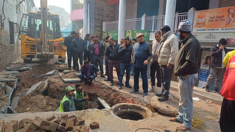 दरेसी नंबर-2 क्षेत्र में मंगौड़े वाली गली के पास सड़क सोमवार सुबह अचानक करीब 20 फीट धंस गई। गनीमत रही कि बाजार बंदी का दिन होने से भीड़ नहीं थी।