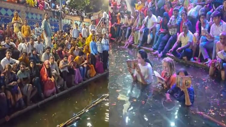 रात गहराने के साथ-साथ दीपों की रोशनी घाटों पर झिलमिलाने लगी। मध्यरात्रि 12 बजते ही भीड़ ने डुबकी लगाई।