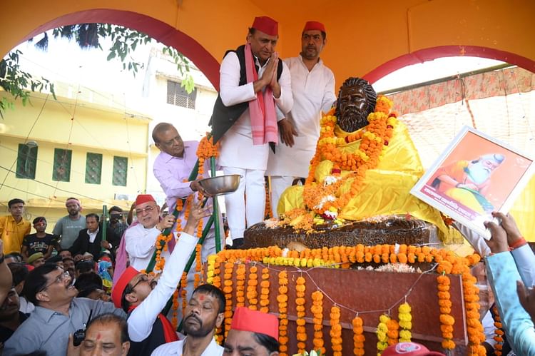 महर्षि वाल्मीकि की प्रतिमा पर अखिलेश यादव ने किया माल्यार्पण।