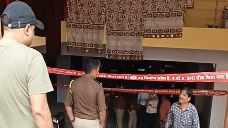 तुलसी अपार्टमेंट को सील करते एडीए विभाग के अधिकारी