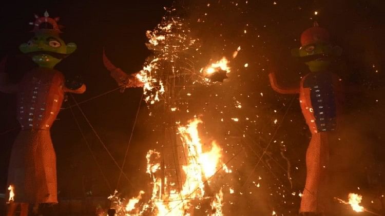 अलीगढ़ की रामलीला में इस बार दशहरे पर रावण, कुंभकर्ण एवं मेघनाथ के पुतले खास होंगे। नुमाइश मैदान पर आयोजित होने वाले दशहरा मेले में रावण का पुतला ठहाका लगाएगा। प्रभु श्रीराम का तीर लगते ही रावण की आंखों एवं छाती से खून निकलेगा। तीनों पुतले ठहाके लगाने के साथ ही अपनी गर्दन भी चारों ओर घुमाएंगे। उनकी गर्जना से पूरा मैदान गूंज उठेगा। इन पुतलों को करीब चार लाख रुपये में तैयार किया जाएगा।