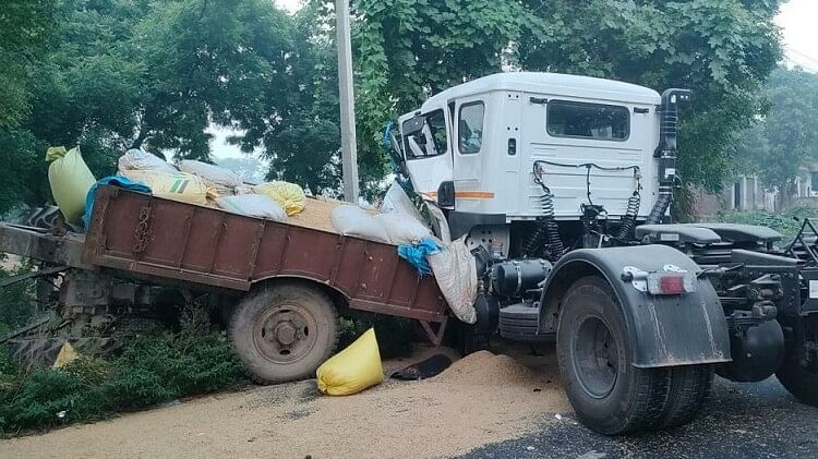 ट्रैक्टर-ट्रॉली में घुसा ट्रक