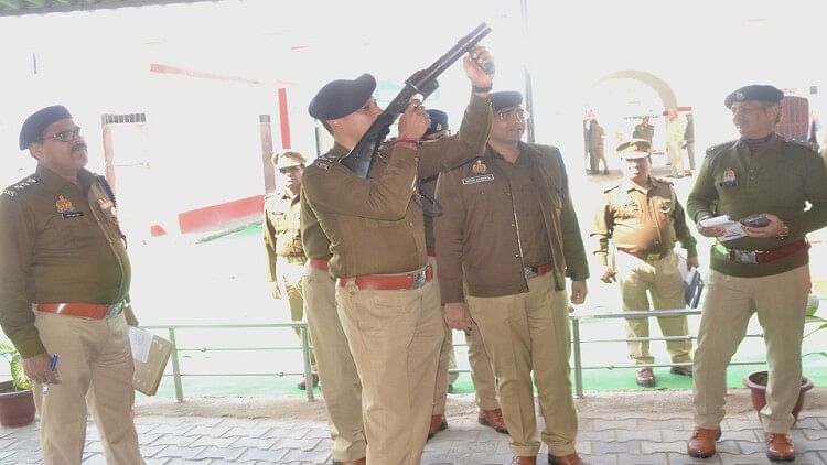 कोतवाली में हथियार चलाने के बारे में बताते आईजी शलभ माथुर