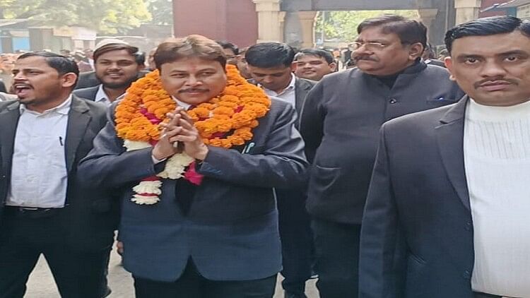 दि अलीगढ़ बार एसोसिएशन के चुनाव के लिए नामांकन करने जाते अधिवक्ता