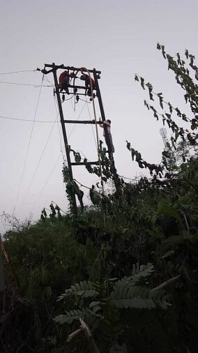 पोल को ठीक करते कर्मी