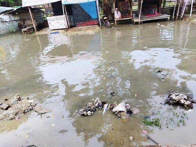 बाजार शुकुल में भरा बारिश का पानी।